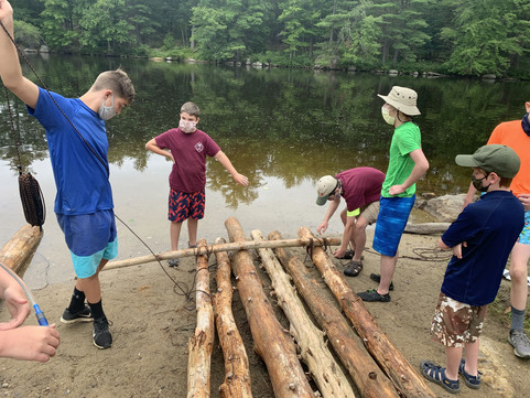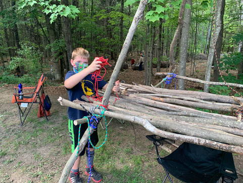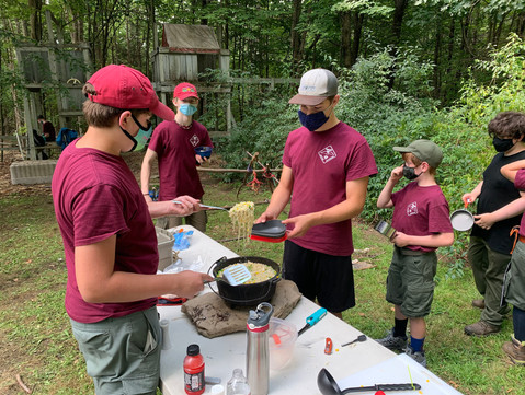 This summer, due to COVID-19, the BSA cancelled all scouting events so unfortunately that left Troop 99 with no summer camp options. Even the awesome weeklong troop camp that they planned at a private property in Vermont, affectionately called "Wells' World," was cancelled. With summer camp being such an integral part of the scouting experience, it was a reluctant decision to make. Still, the Troop took it upon themselves to craft their own local day camp experience that was certainly a memory maker. The Jamboree, as it was called, was five days of outdoor scouting skills and competitions, held right here in Goffstown. All covid precautions were taken including mask wearing, daily temperature screening, and waivers every day.