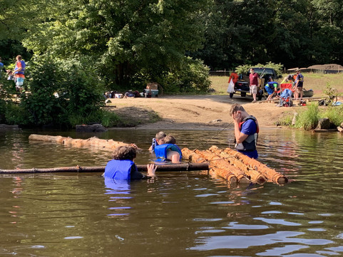 All the scouts made it to the island, so the rafting trip was a success. Luckily the water in Glen Lake was in most spots shallow enough that they could walk and push the rafts.