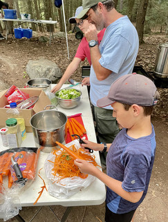 Sam was working on his cooking merit badge, so he did a lot of the cooking for the chicken and vegetables.