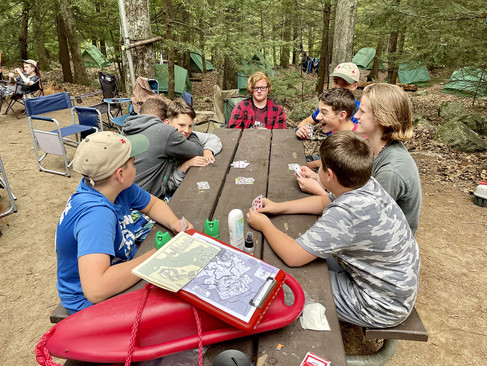 The troop really lucked out with good weather all week, except for Day 5. It was a little rainy, so instead of the Sports Day that was scheduled, it became an extended free time day and the scouts found ways to pass the time in the large pavilion near the campsite.